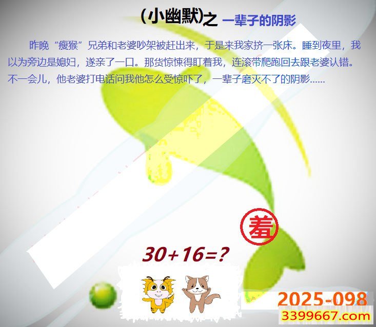 | 主题 :098期:小鱼儿30码期期中+幽默猜测 |