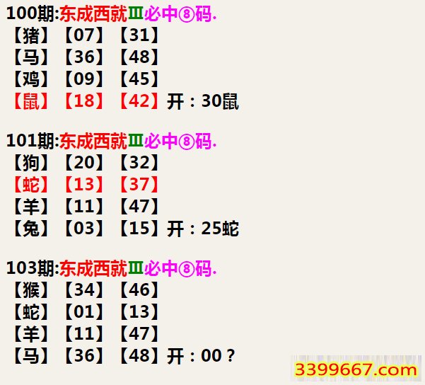 | 主题 :103期:东成西就Ⅲ必中⑧码 |