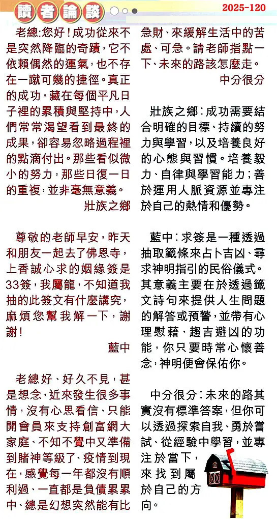 | 主题 :120期:彩民推荐贴信读者论坛 |