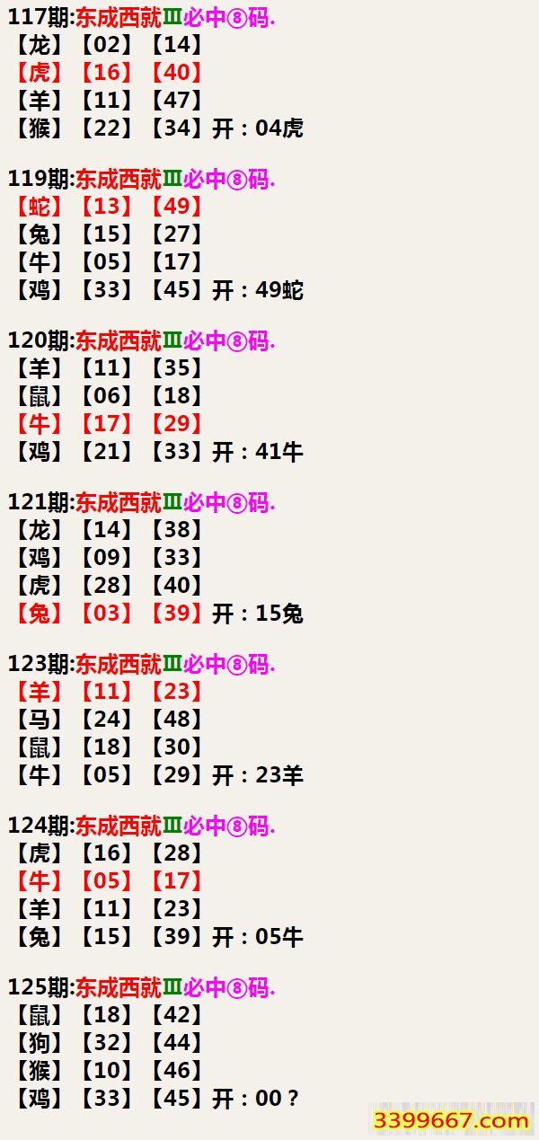 | 主题 :125期:东成西就Ⅲ必中⑧码 |