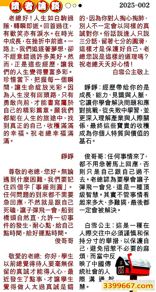 主题 :002期:彩民推荐〖貼信讀者論壇〗