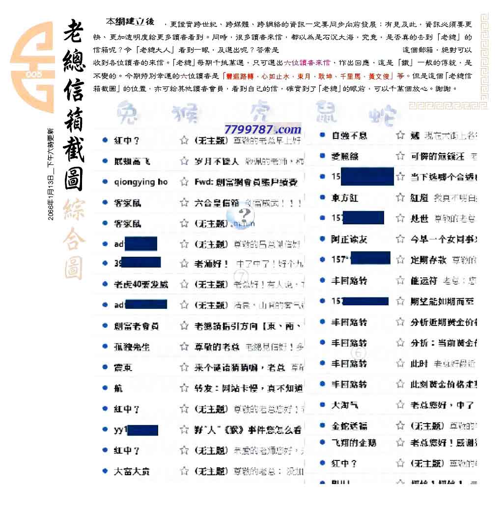 主题 :005期:六合皇金句/老总论码/萧公子/林大师/五行夺码/老总信箱截