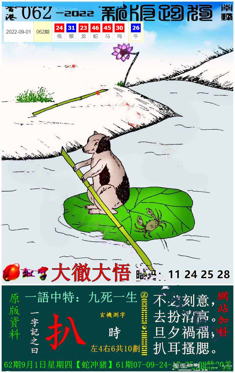 | 主题 :077期:新版跑狗一字記之曰【扒】 玄機測字:【醜】 |
