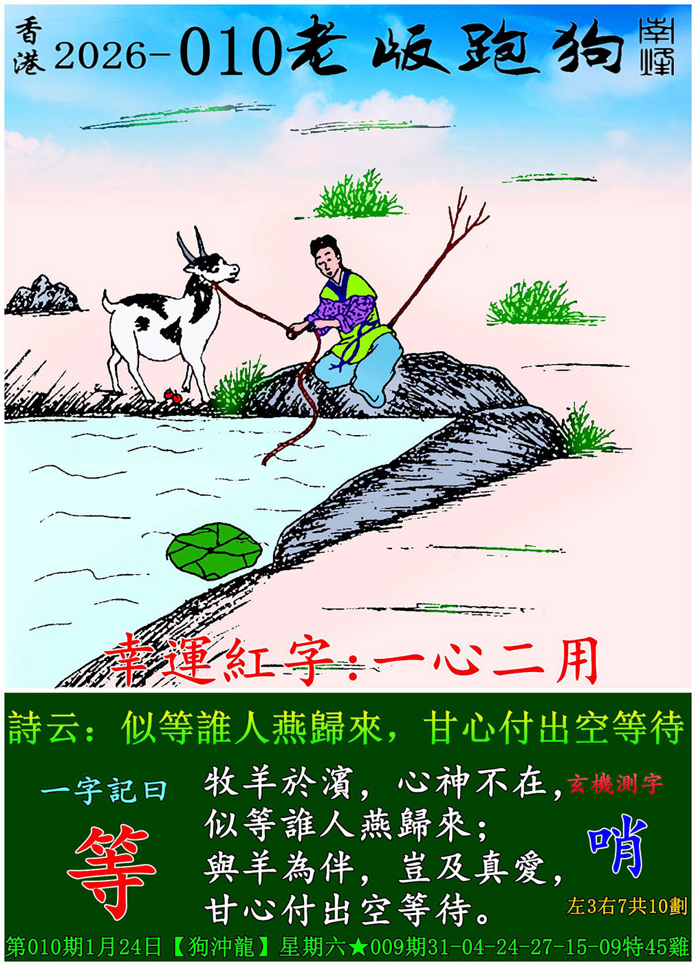 | 主题 :010期老版跑狗一字記之曰:【等】 玄機測字:《哨》 |