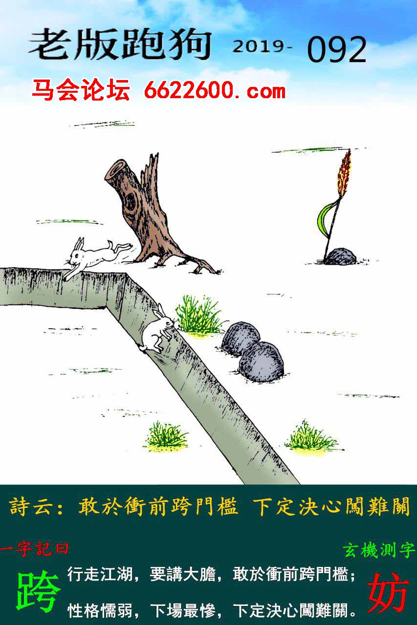 092期:老版跑狗一字記之曰【妨】玄機測字《跨》