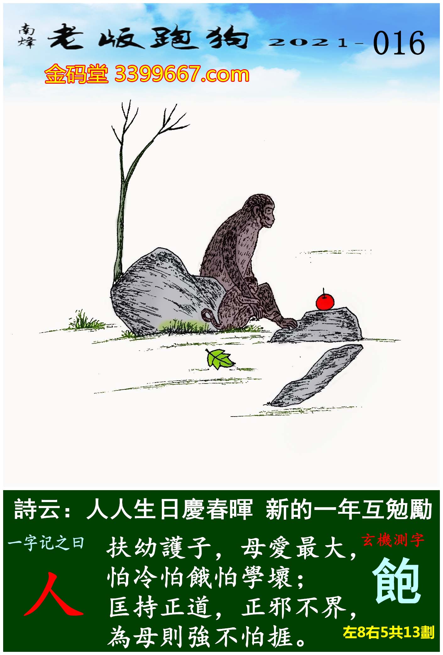 016期老版跑狗一字記之曰:【人】