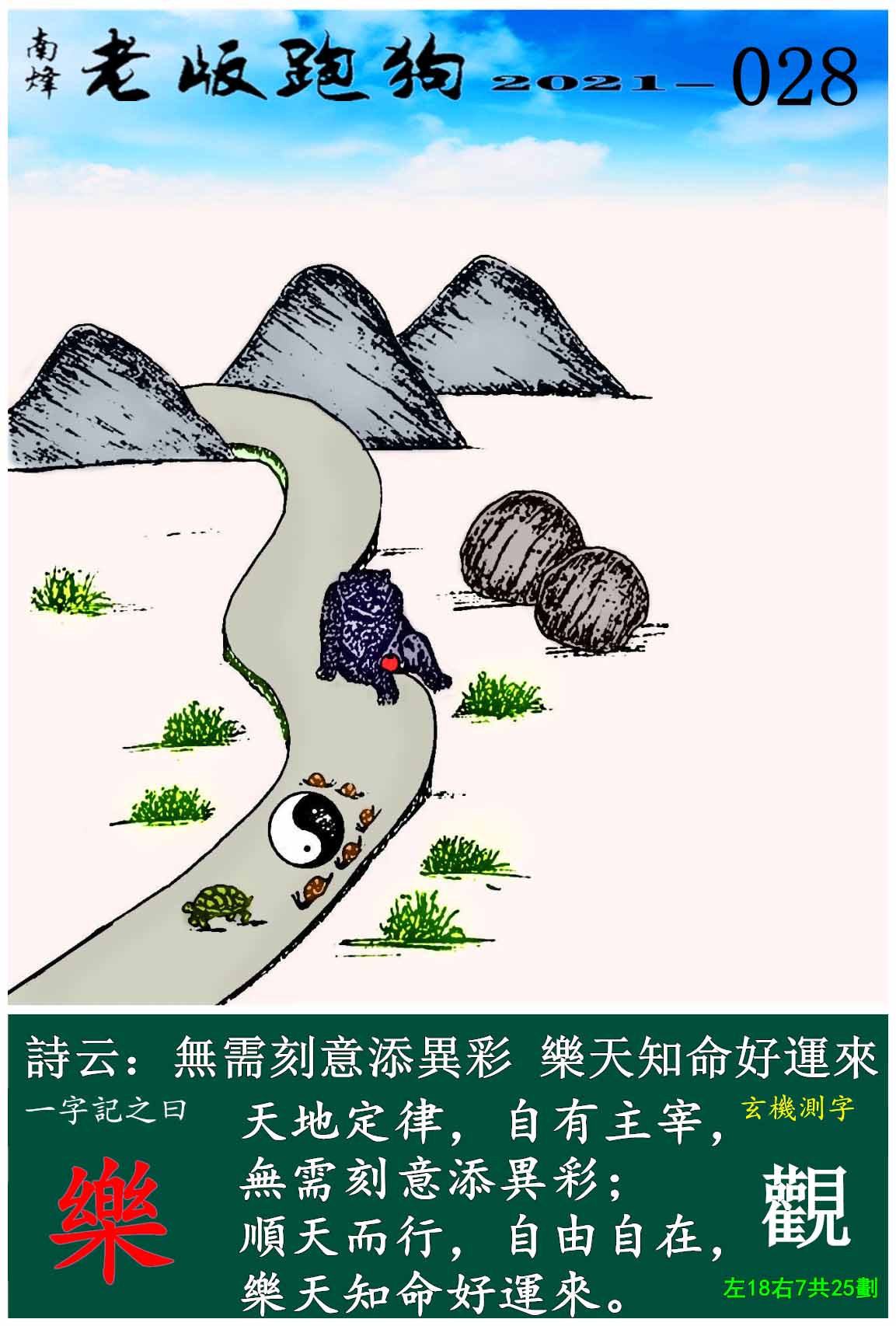 028期老版跑狗一字記之曰:【樂】玄機測字:《觀》