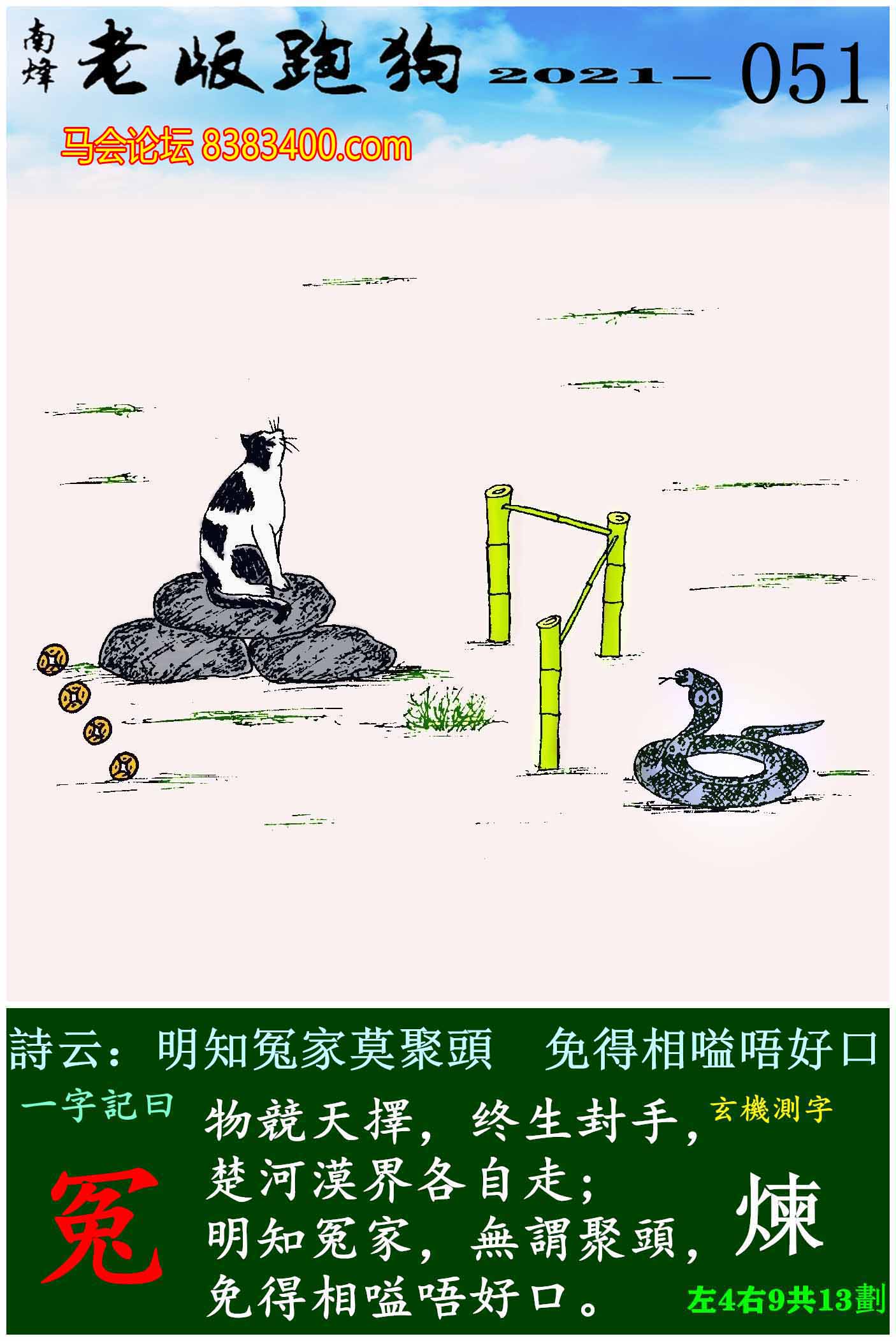 051期老版跑狗一字記之曰:【冤】