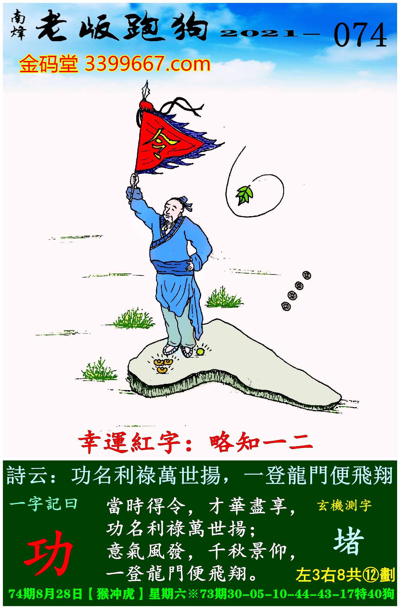 074期老版跑狗一字記之曰:【功】