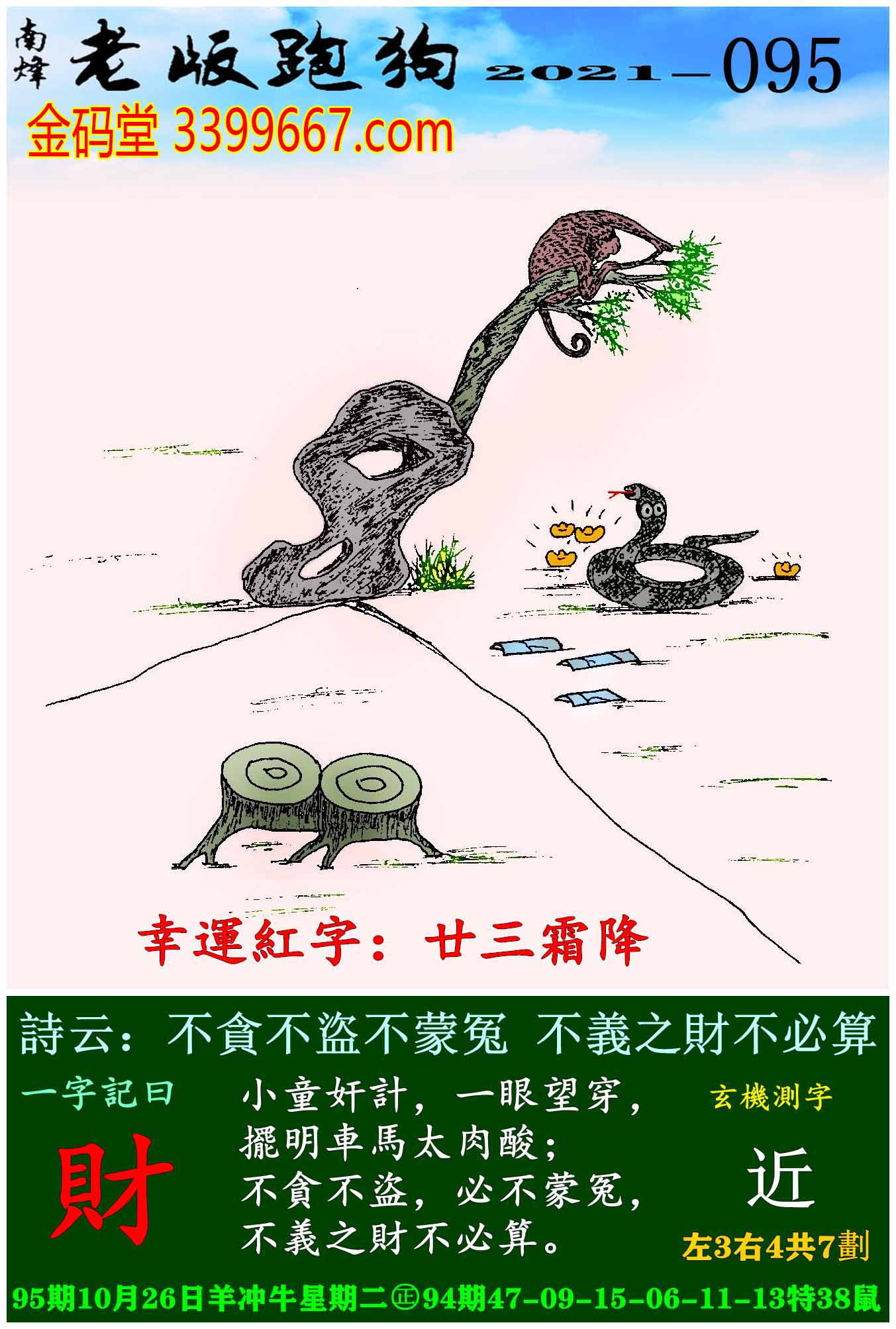 095期老版跑狗一字記之曰:【財】