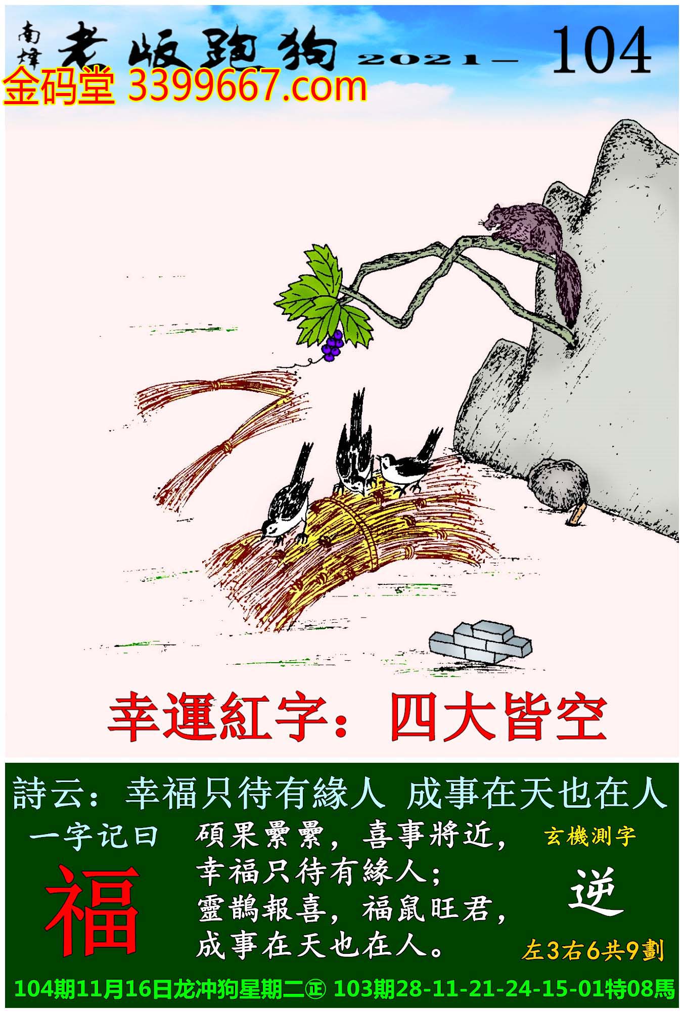 104期老版跑狗一字記之曰:【福】
