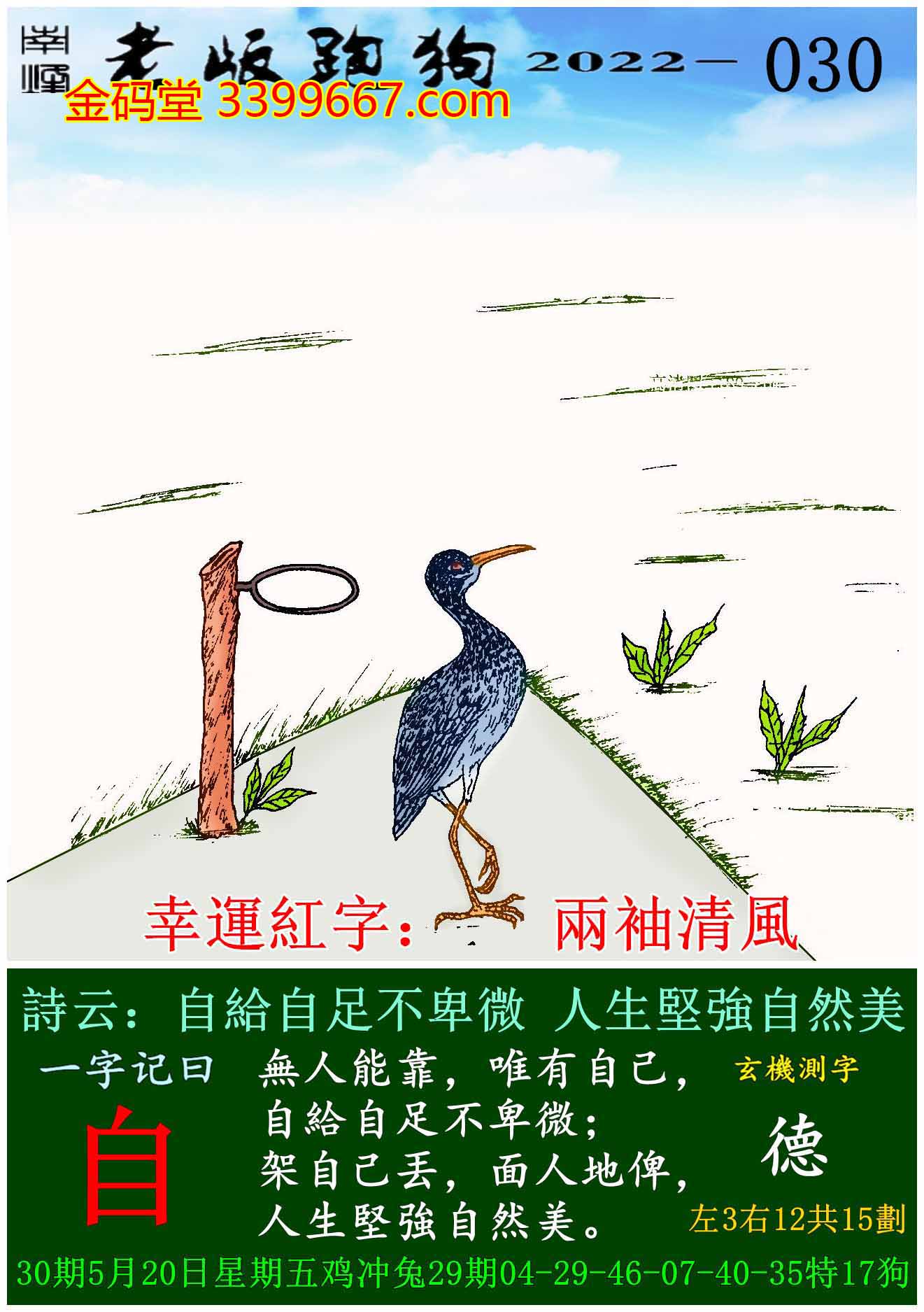 030期老版跑狗一字記之曰:【自】