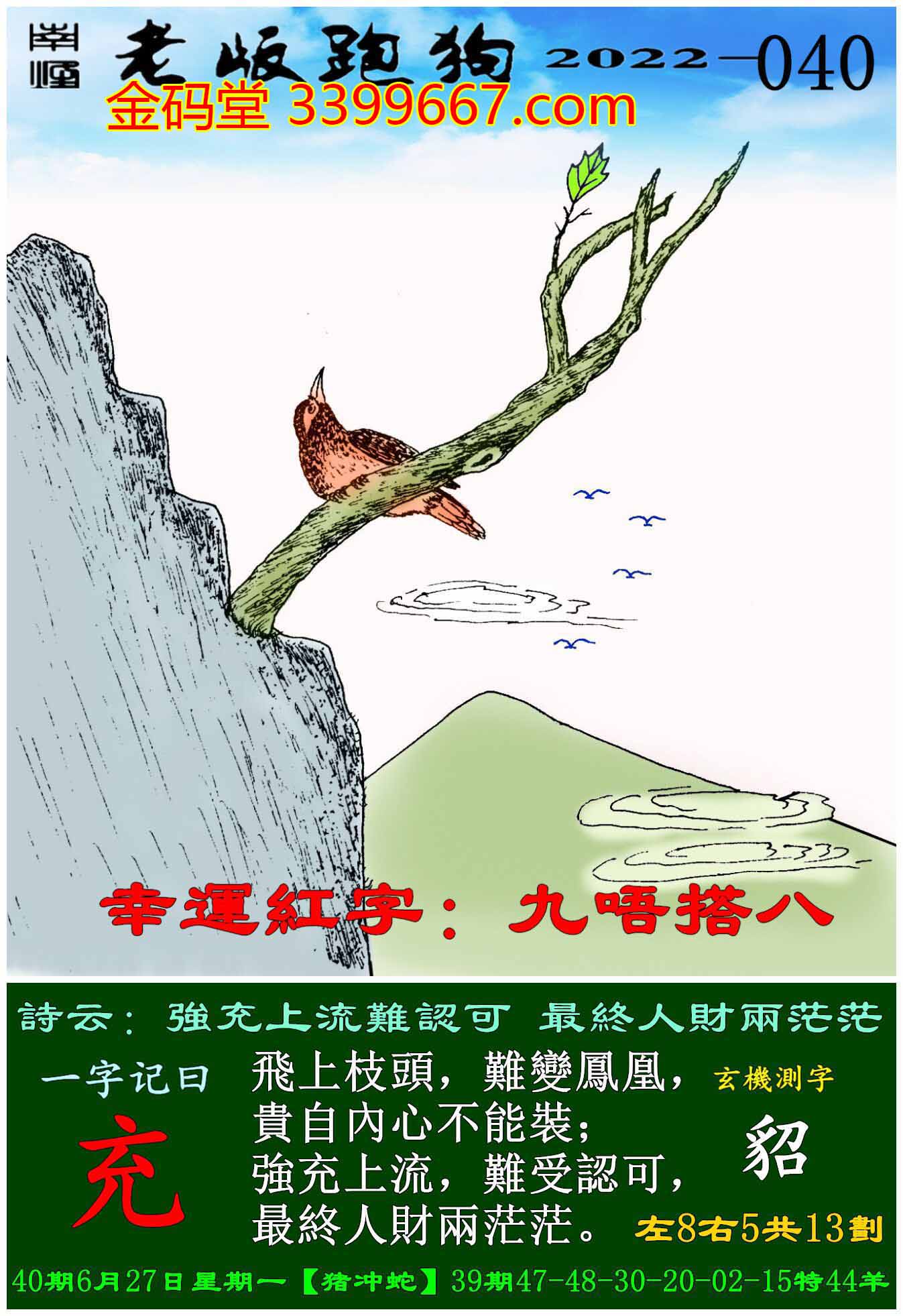 040期老版跑狗一字記之曰:【充】