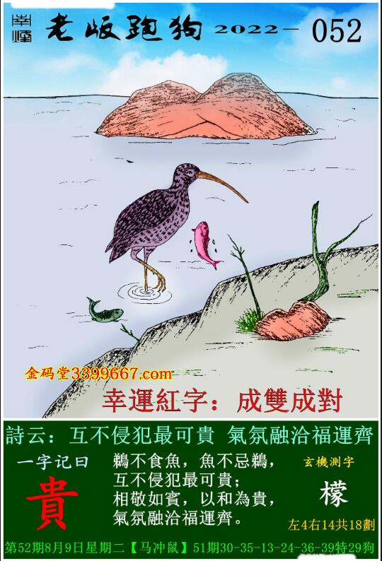 052期老版跑狗一字記之曰:【貴】