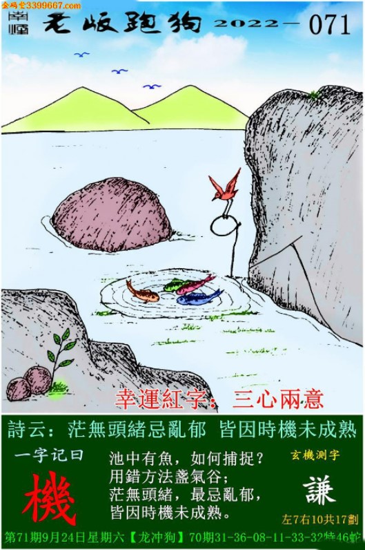 071期老版跑狗一字記之曰:【機】 玄機測字:《謙》