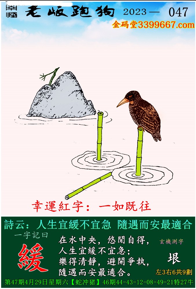 047期老版跑狗一字記之曰:【緩】