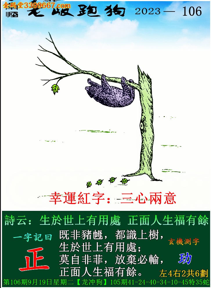 106期老版跑狗一字記之曰:【正】