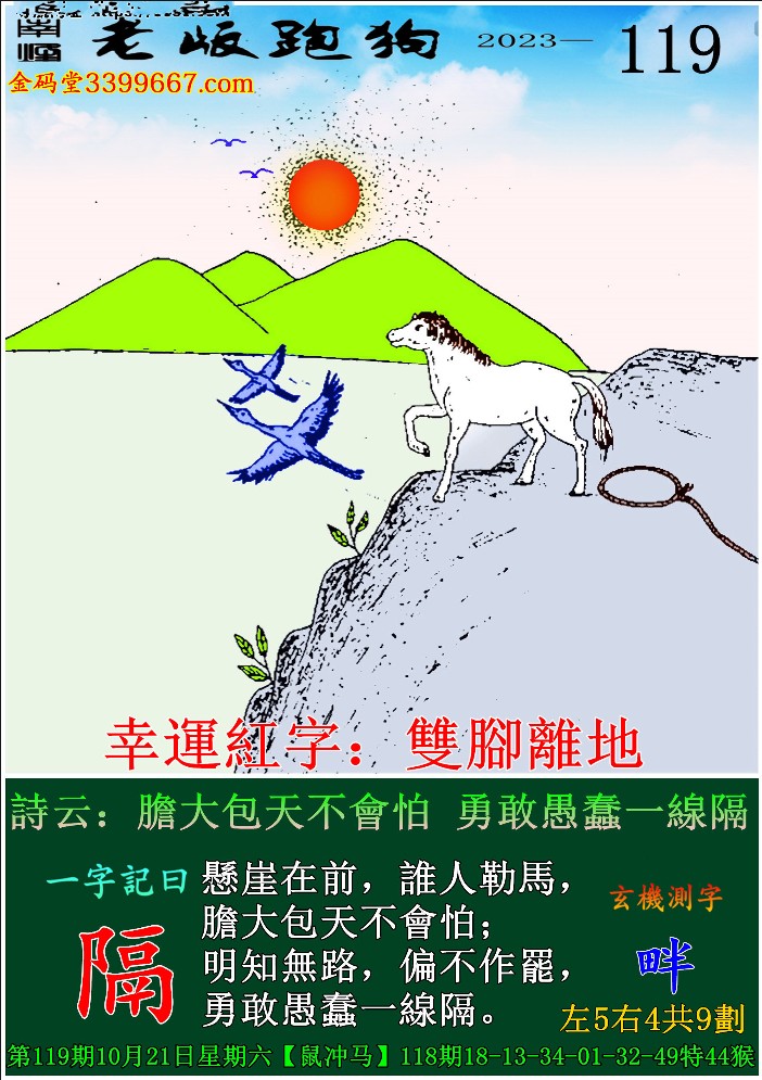 119期老版跑狗一字記之曰:【隔】 玄機測字:《畔》