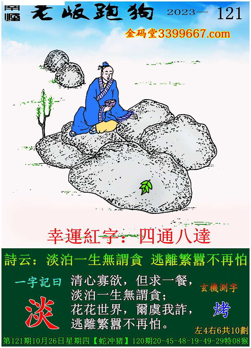 121期老版跑狗一字記之曰:【淡】