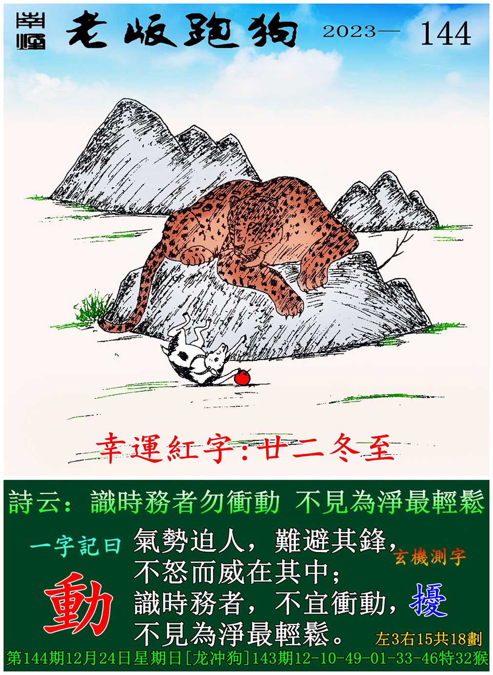 主题 : 144期老版跑狗一字記之曰:【動】 玄機測字:《擾》