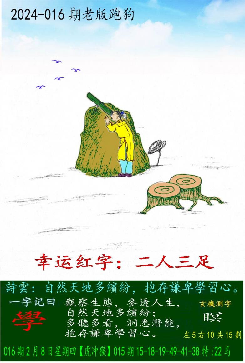 016期老版跑狗一字記之曰:【學】