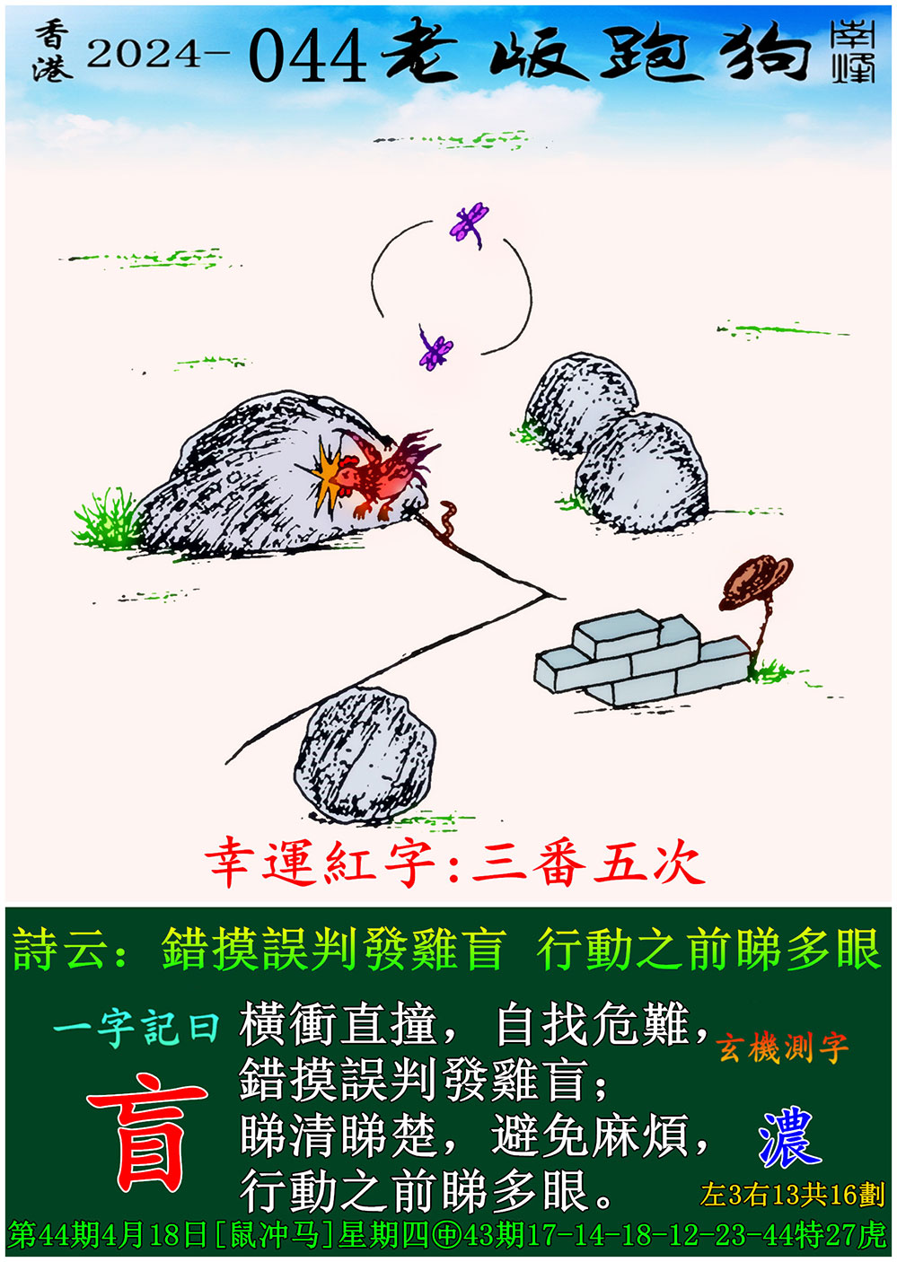 主题 : 044期老版跑狗一字記之曰:【盲】 玄機測字:《濃》