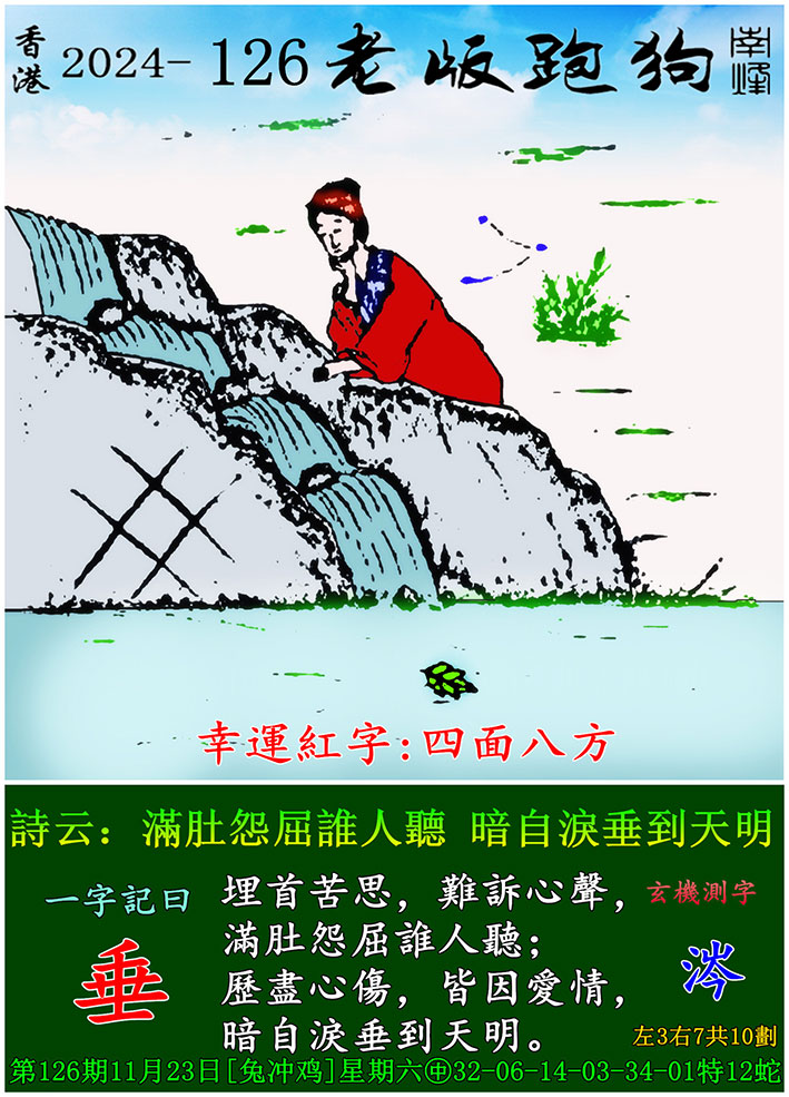 126期老版跑狗一字記之曰:【垂】 玄機測字:《涔》