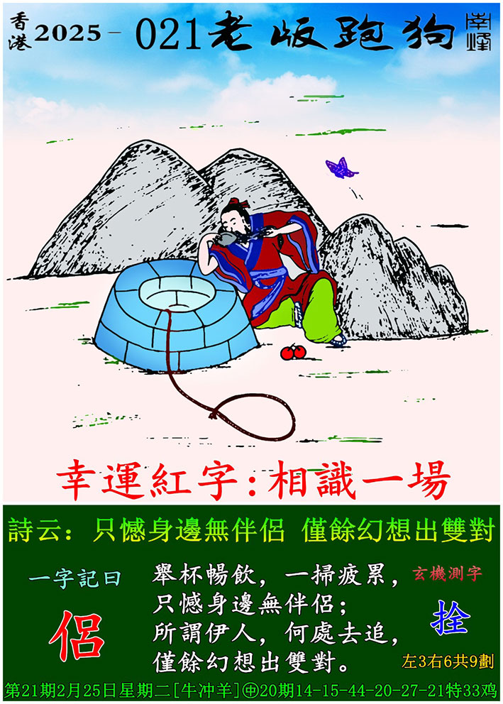 021期老版跑狗一字記之曰:【侶】