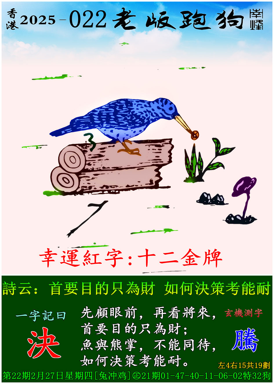 022期老版跑狗一字記之曰:【決】