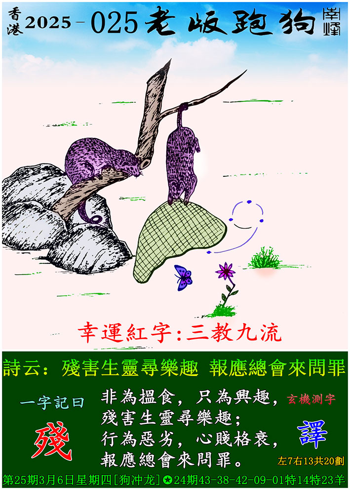 主题 : 025期老版跑狗一字記之曰:【殘】 玄機測字:《譯》