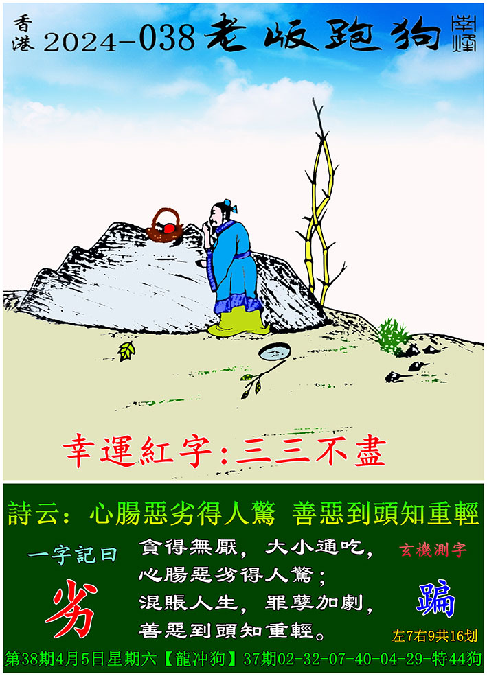 038期老版跑狗一字記之曰:【劣】