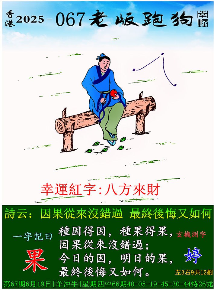 主题 : 067期老版跑狗一字記之曰:【果】 玄機測字:《婷》