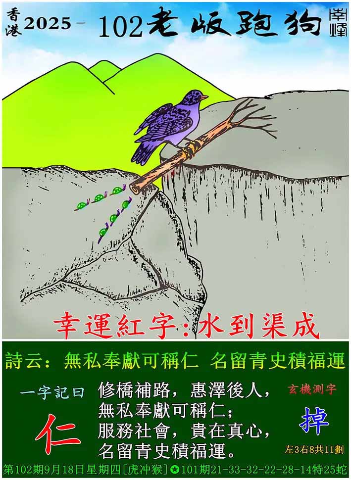 主题 : 102期老版跑狗一字記之曰:【仁】 玄機測字:《掉》