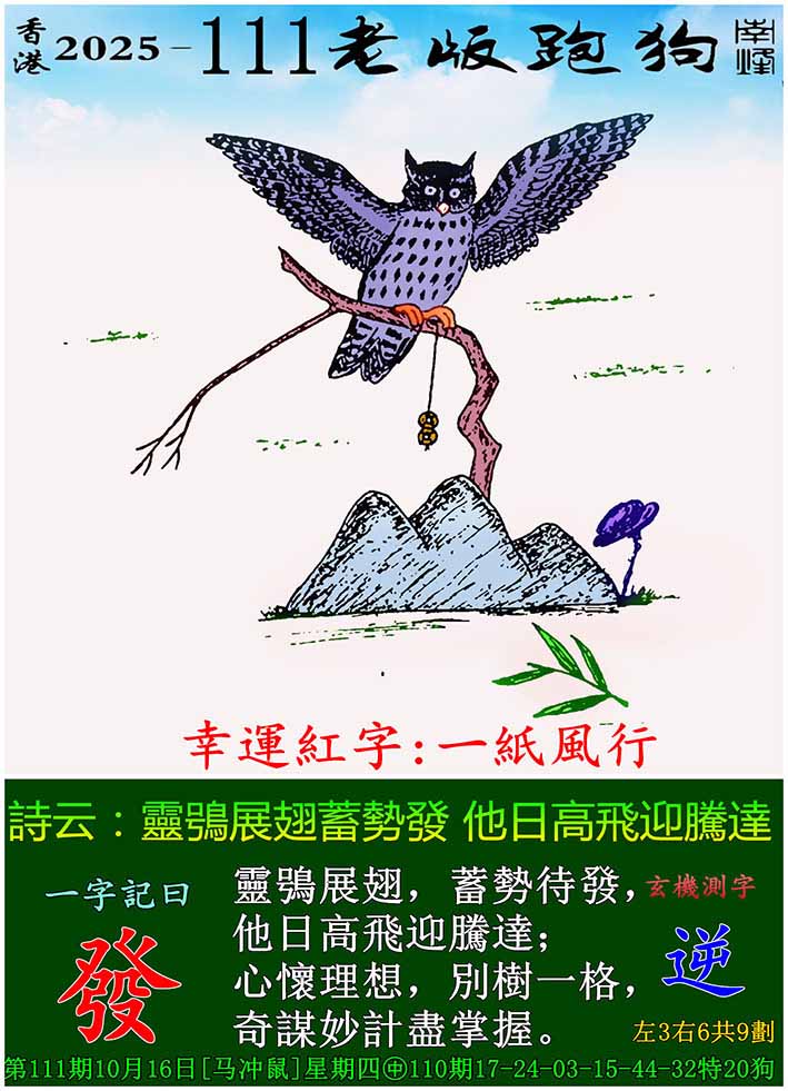 主题 : 111期老版跑狗一字記之曰:【發】 玄機測字:《逆》