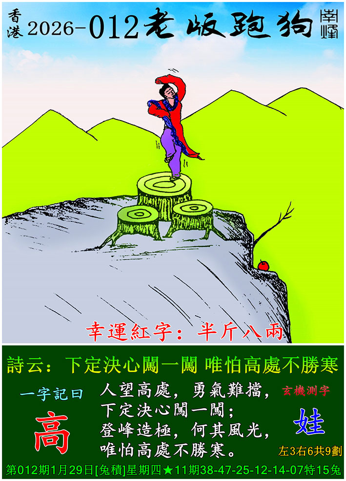 012期老版跑狗一字記之曰:【高】