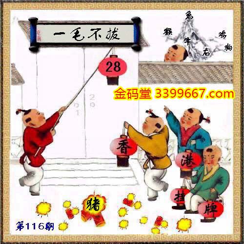 116期正版彩图挂:28爆:猪挂牌成语:一毛不拔 挂牌出肖:猴牛龙兔鸡狗
