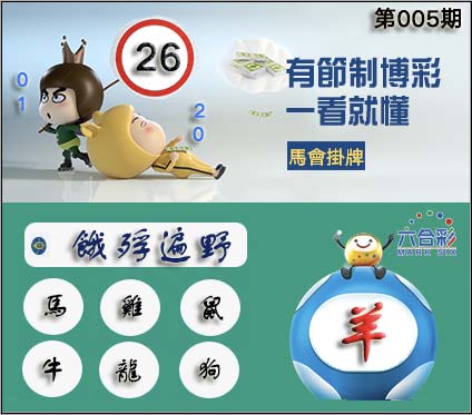 005期正版彩图挂:26 爆:羊 挂牌成语:饿殍遍野 挂牌出肖:马鸡鼠牛龙狗