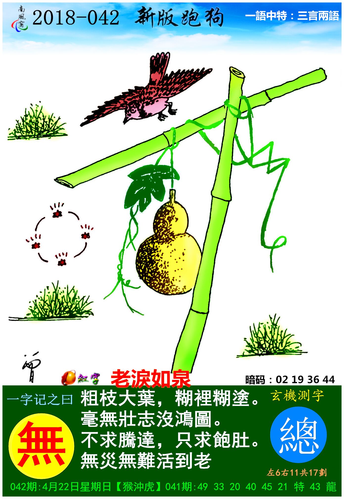主题 : 042期:新版跑狗一字記之曰:【無】 玄機測字《總》