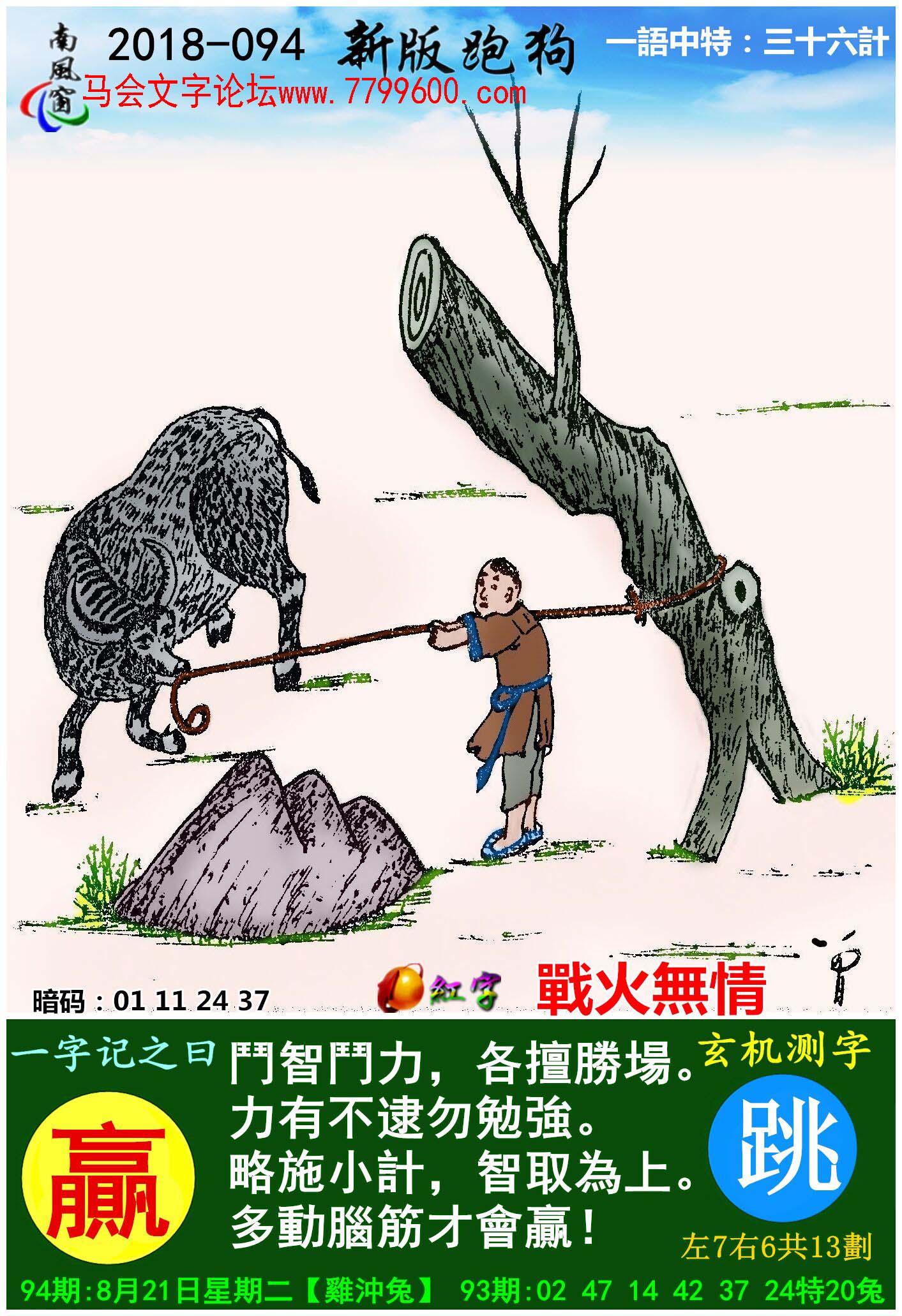 主题 : 094期:新版跑狗一字記之曰【贏】玄機測字《跳》