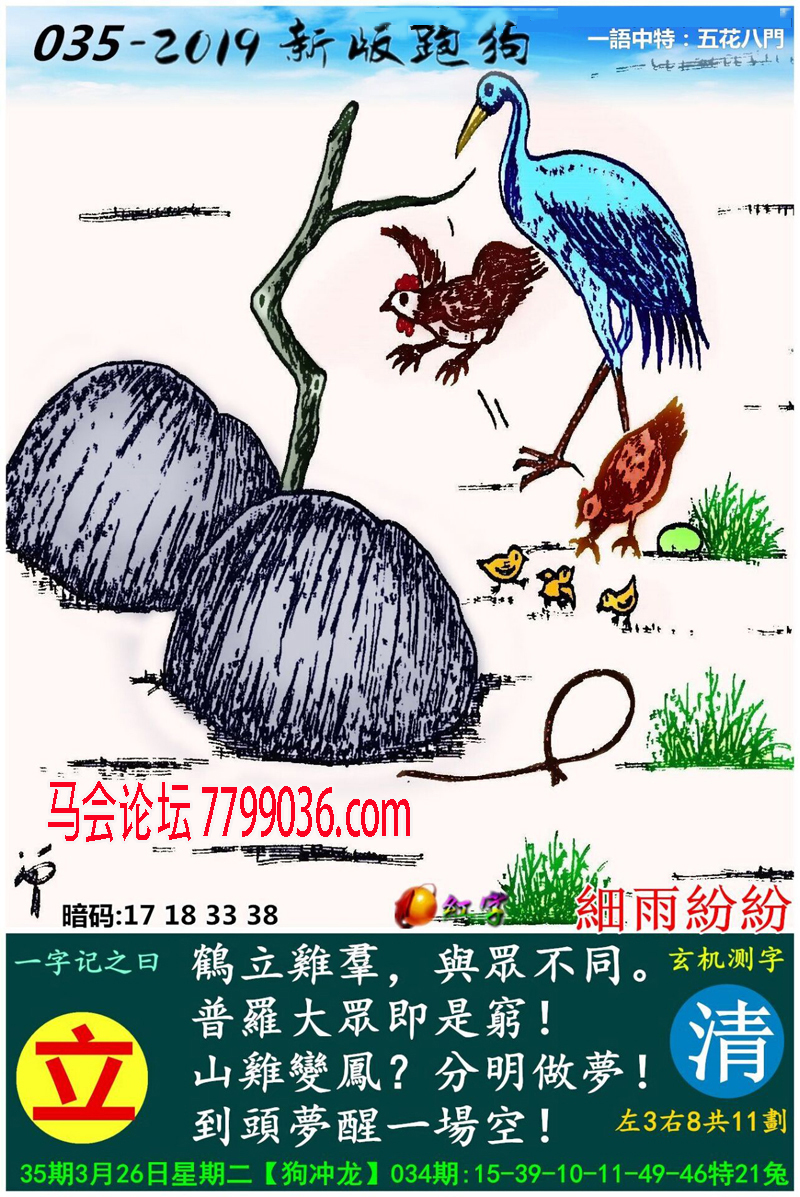 主题 : 035期:新版跑狗一字記之曰【立】玄機測字:《清》