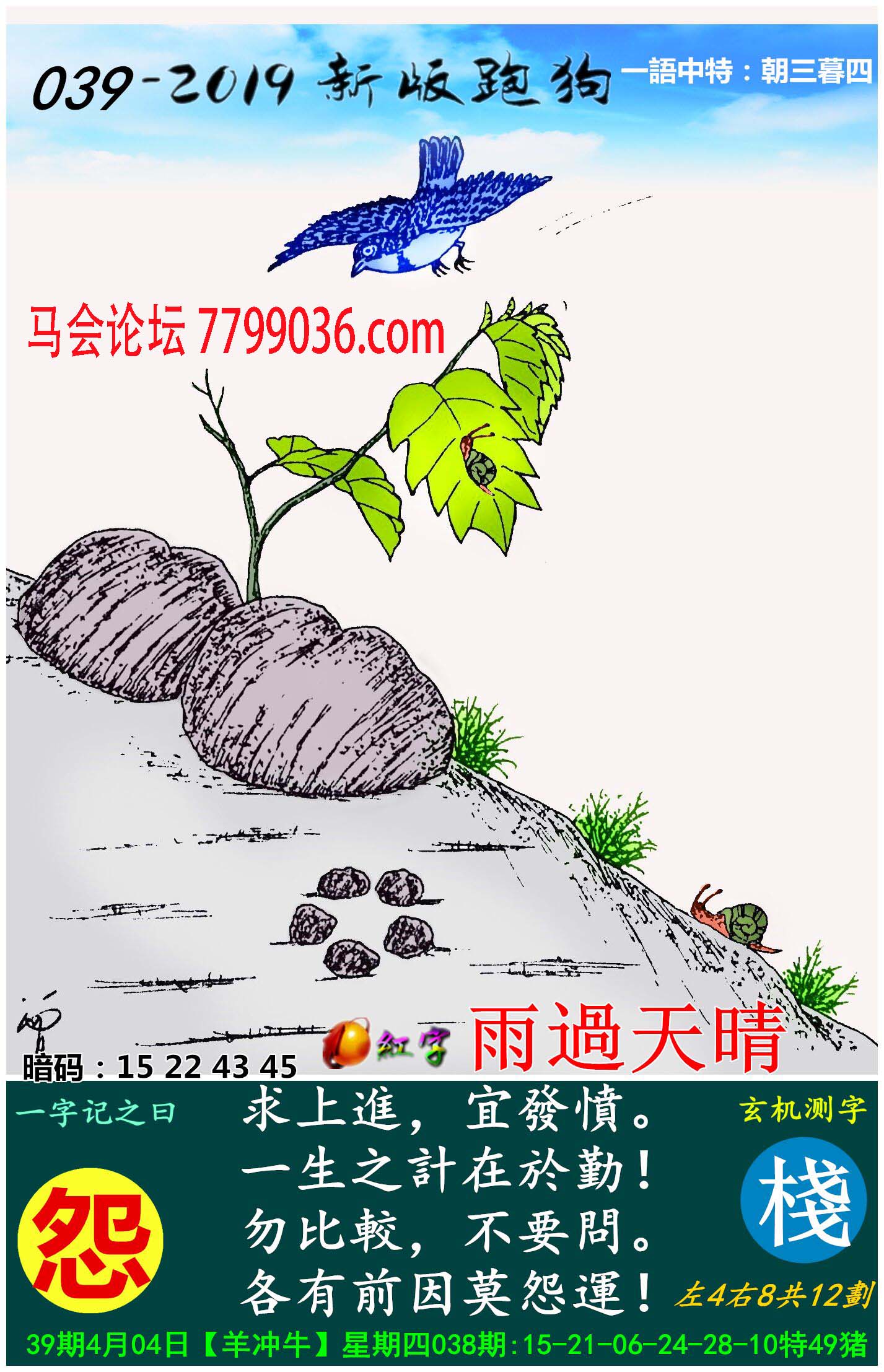 主题 : 039期:新版跑狗一字記之曰【怨】玄機測字:《棧》