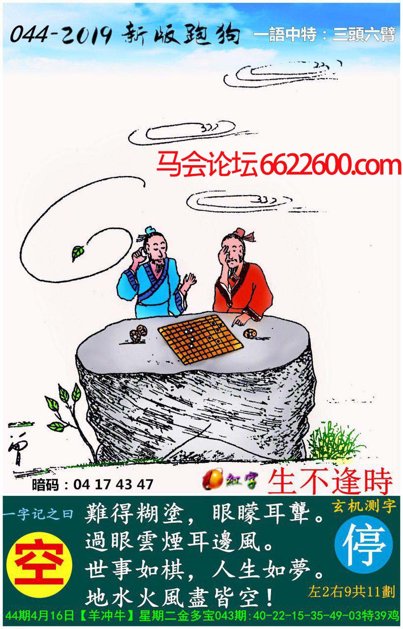 主题 : 044期:新版跑狗一字記之曰【空】玄機測字:《停》