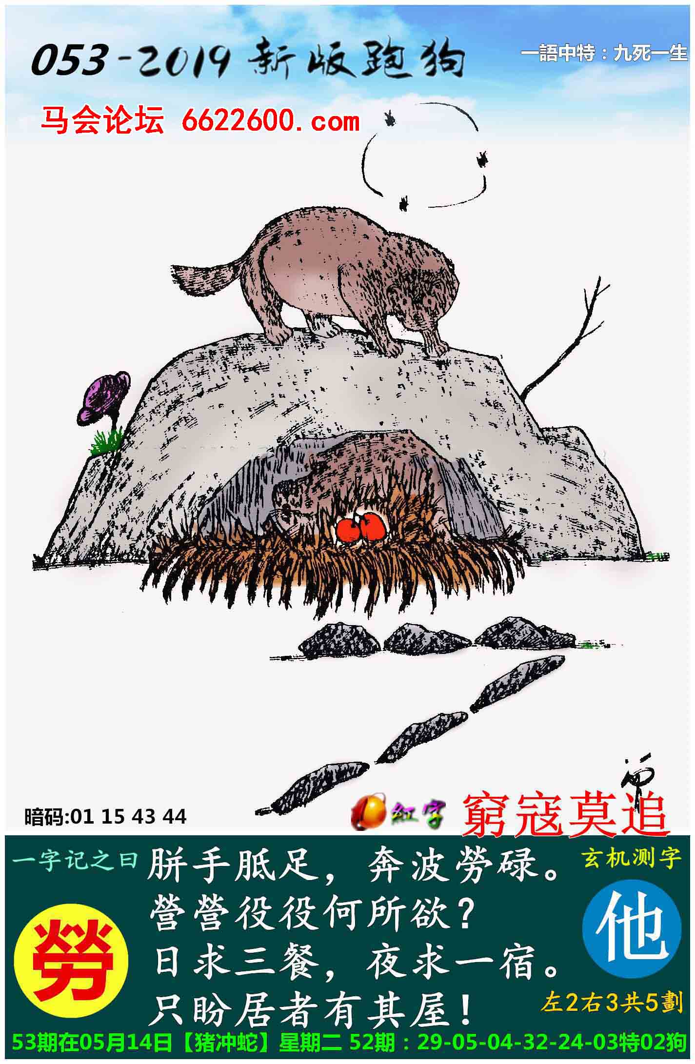 053期新版跑狗一字記之曰:【勞】