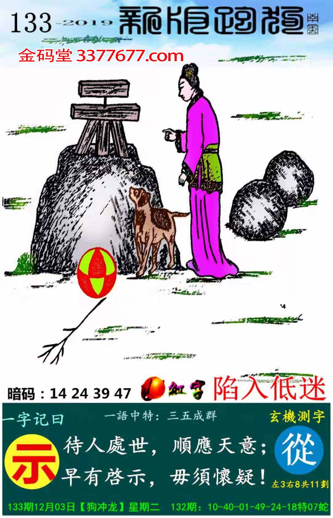 133期:新版跑狗一字記之曰【示】玄機測字:《從》