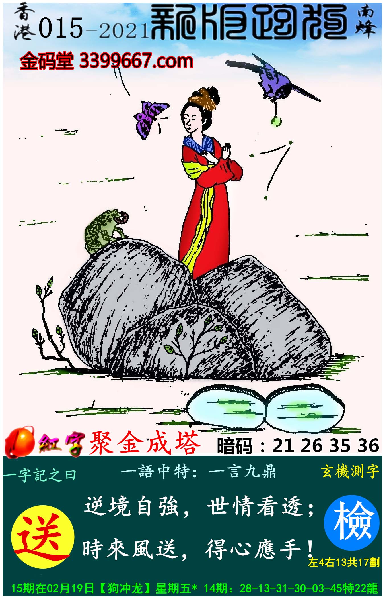 015期:新版跑狗一字記之曰【送】玄機測字:《檢》