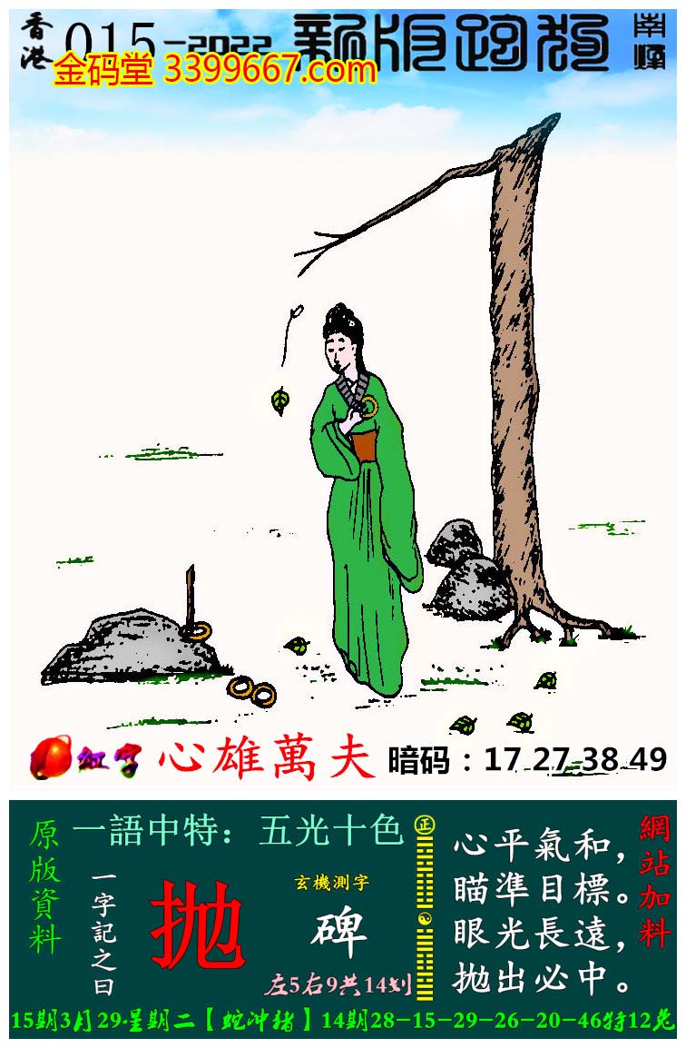 015期:新版跑狗一字記之曰【抛】玄機測字:《碑》