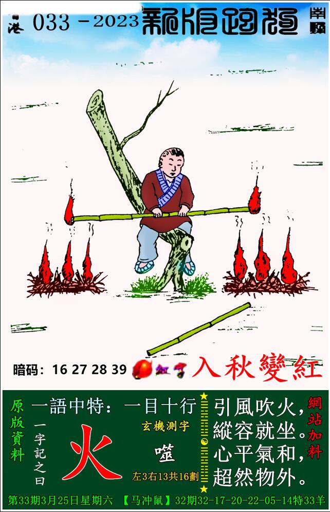 主题 : 033期:新版跑狗一字記之曰【火】 玄機測字:《噬》