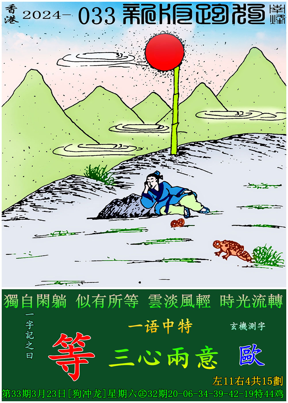 033期:新版跑狗一字記之曰【等】 玄機測字:【歐】