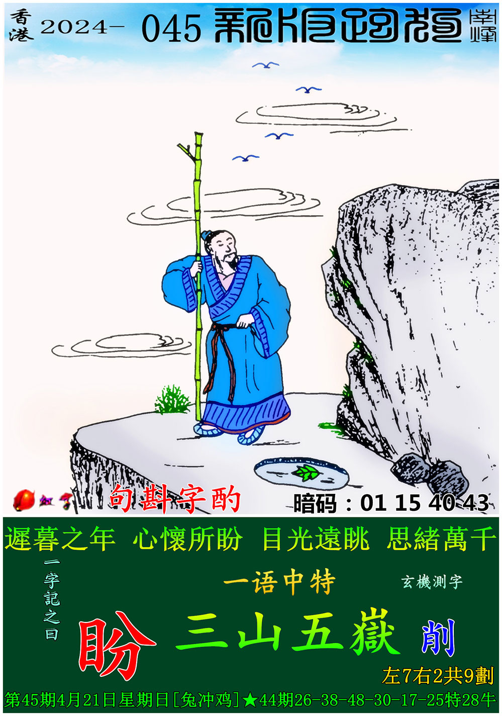 045期新版跑狗一字記之曰:【盼】