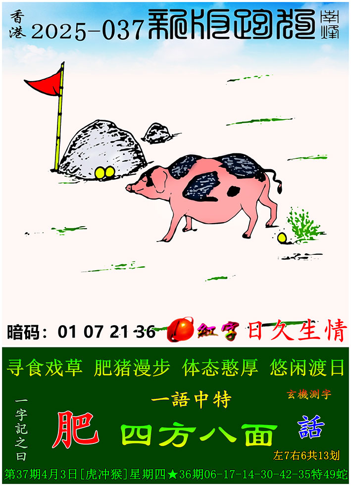 037期:新版跑狗一字記之曰【肥】 玄機測字:【話】